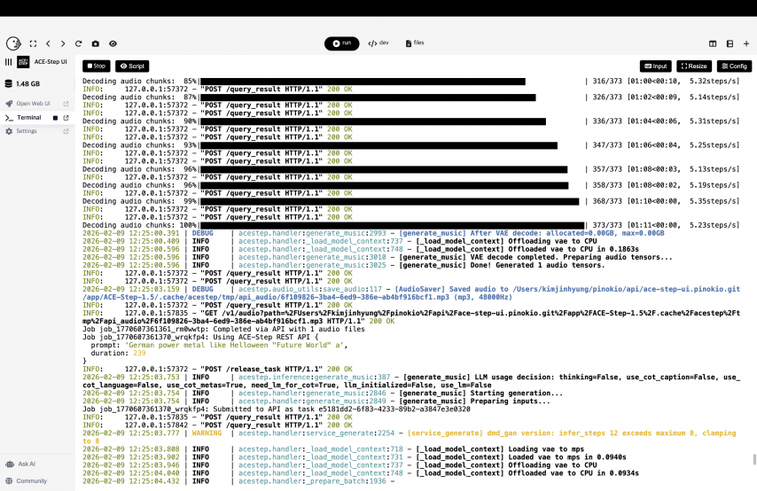 어제 ace step 이란걸 처음 알았는데요. 수노처럼 좋진 않아도 작년 수노정도의 느낌은 되네요. ㅎㅎㅎ 무제한 음악생성 너무 신납니다. 유튜브링크는 그냥 찾아서 하나 가져왔습니다. 아 그리고 제가 만든곡은 https://on.soundcloud.com/OAHM8YzDrlSrv16HG9 여기서 들으실수 있어요. 헬로윈 스타일의 메탈곡입니다. 2