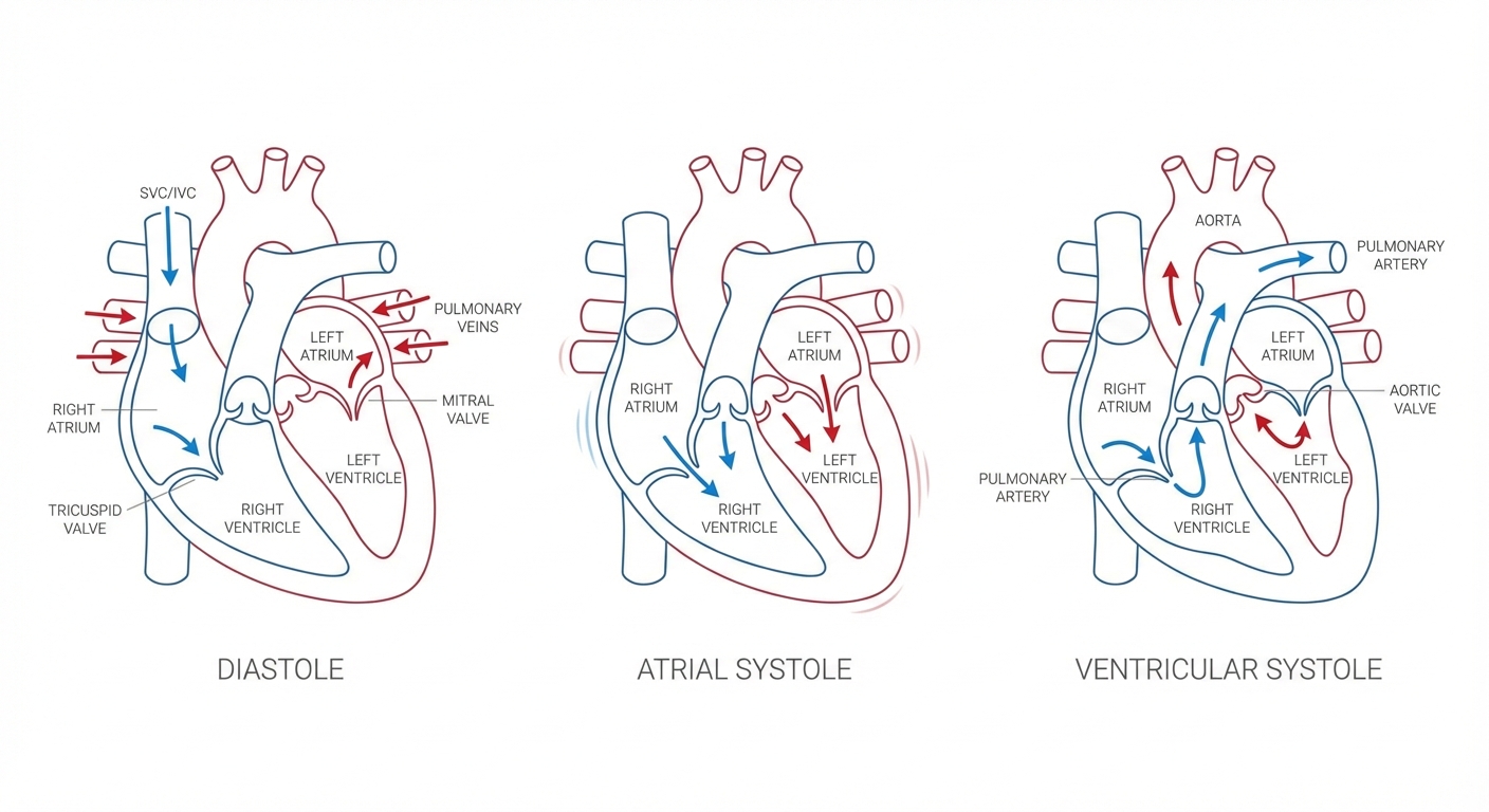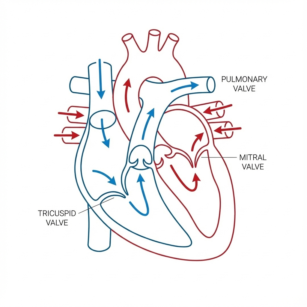 @나노바나나 심플한 도식화된 그림으로 심장이 수축과 이완을 반복하는 모습을 2심방 2심실, 판막들과 대정맥, 대동맥, 폐동맥, 폐정맥 간의 관계가 잘 드러나도록 그려주고 혈액의 흐름도 알 수 있도록 만들어줘. 움직이는 그림으로 만들어 줘.