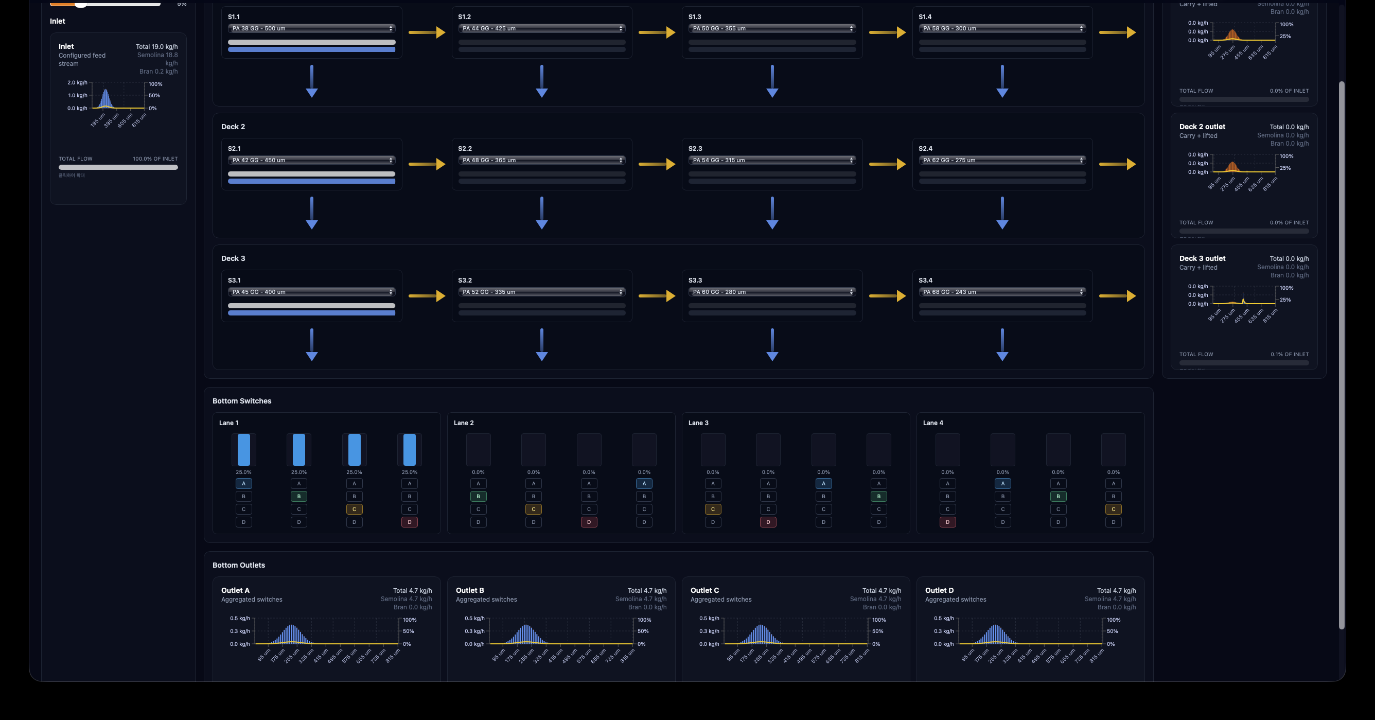 제분 공정에서 중요한 설비인데 표준화된 데이터도 거의 없고 설치된 공장이나 공정내 위치에 따라 규격설정과 운영이 굉장히 까다로운(경험적 데이터가 많이 필요한) 설비인데, 시뮬레이터를 만들면 효과적일 것이란 생각이 들어서 제작했습니다.