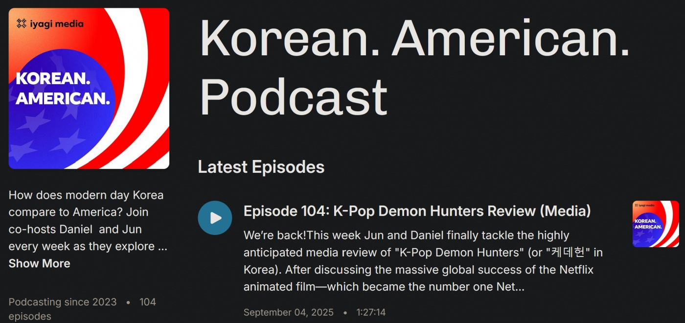 그래서 그렇게 막을 내리나 했는데 케데헌 에피소드로 부활하면서 ㅋㅋㅋ 올려봅니다. 위 102회도 좋고 케데헌이 궁금하면 104회도 시작으로 듣기 좋은듯합니다. 한미 대학생활 비교 에피소드인 96, 97회도 처음 듣기에 무난하고 좋은듯합니다.