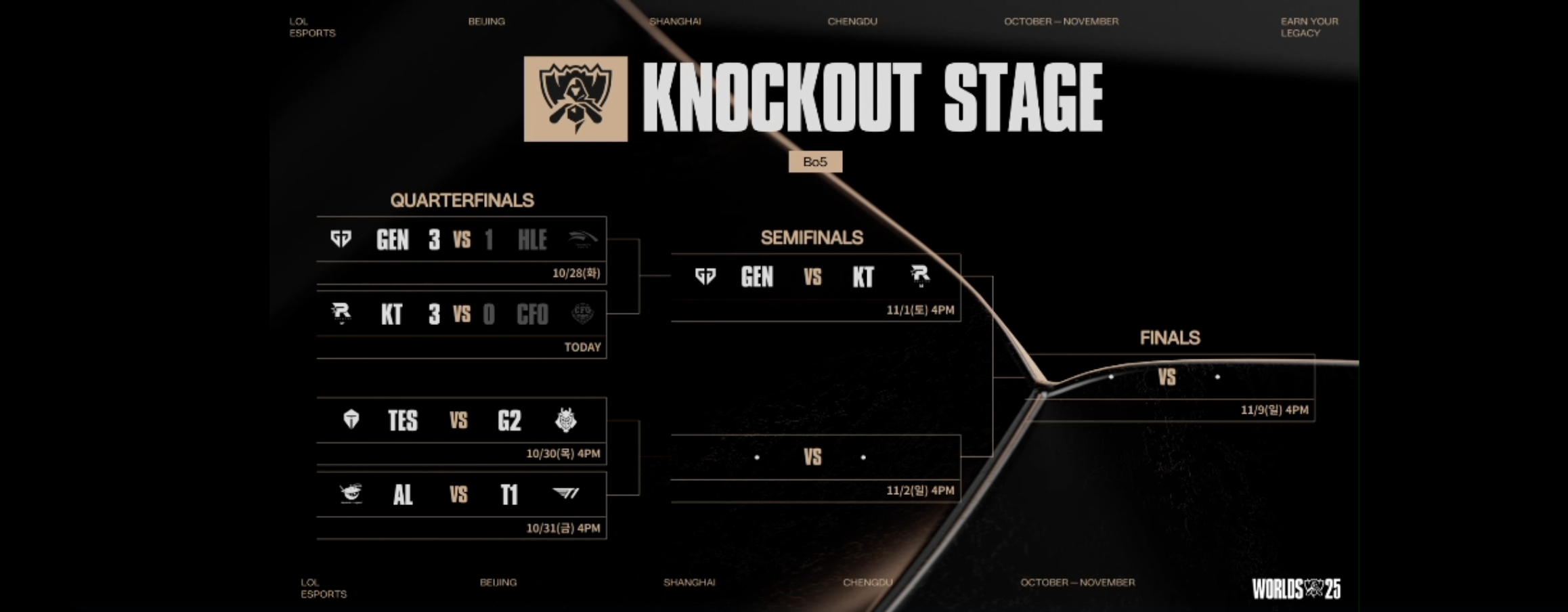 2025 리그 오브 레전드 월드 챔피언십 녹아웃 스테이지 8강 3일차(중국,중국 상하이 mercedes-Benz Arena,25.20버전) (치지직, 네이버 e스포츠, YouTube, SOOP,싱글 엘리미네이션 토너먼트,5판 3선승제) ※8강 3일차 16 : 00 Top Esports(LPL#3) vs G2 Esports(LEC#1) 금목서 속 은목서 : 겨우 한시름 놓은 기분 아무나 이기고 0