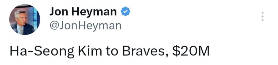 Subject   [MLB] 김하성 1년 20M 애틀랜타행