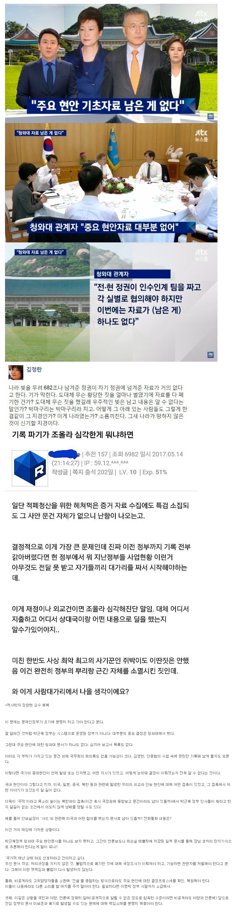 | Subject | 박근혜 정권의 기록파기는 문재인 정부에게 거의 재앙급의 상황.jpg |