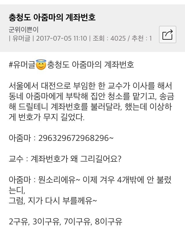 - 유머가 아닌 펌글, 영상 등 가볍게 볼 수 있는 글들도 게시가 가능합니다.