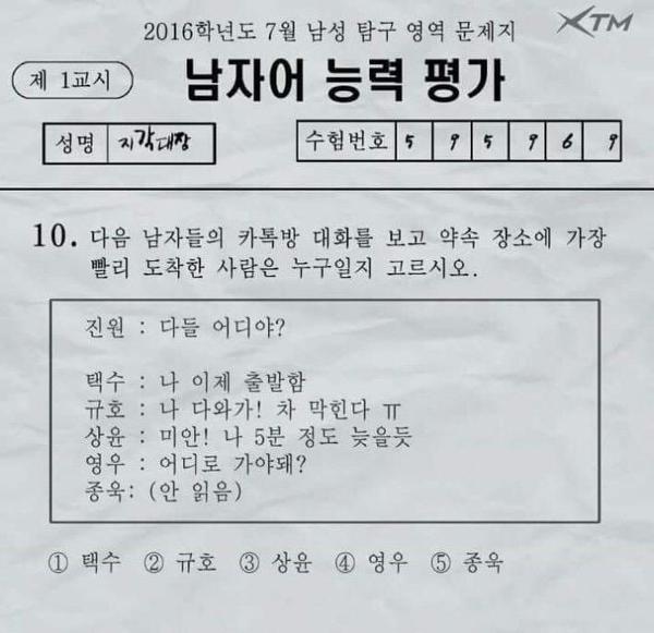 | Subject | 다음중 약속 장소에 가장 빨리 도착한 사람은 누구인가? |