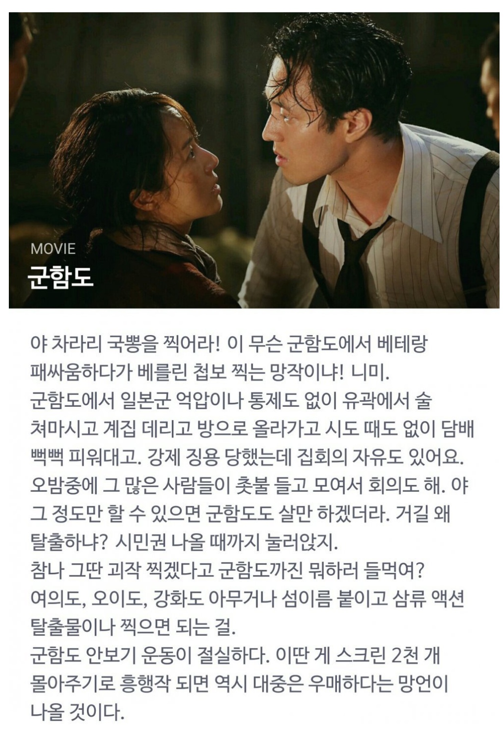 | Subject | 군함도에 묵직한 공격 날린 어느 관람객.jpg |