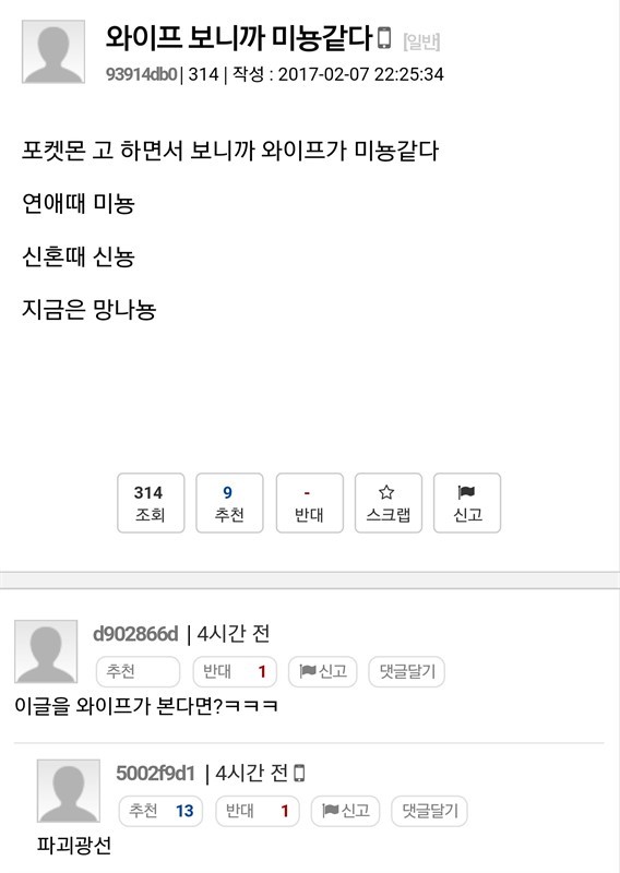 | Subject | 와이프 보니까 미뇽 같아요^^ |