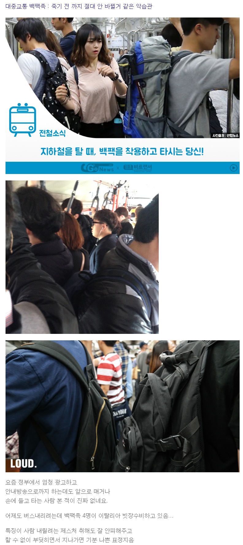 | Subject | 대중교통 백팩족 : 죽기 전 까지 절대 안 바뀔거 같은 악습관.jpg |
