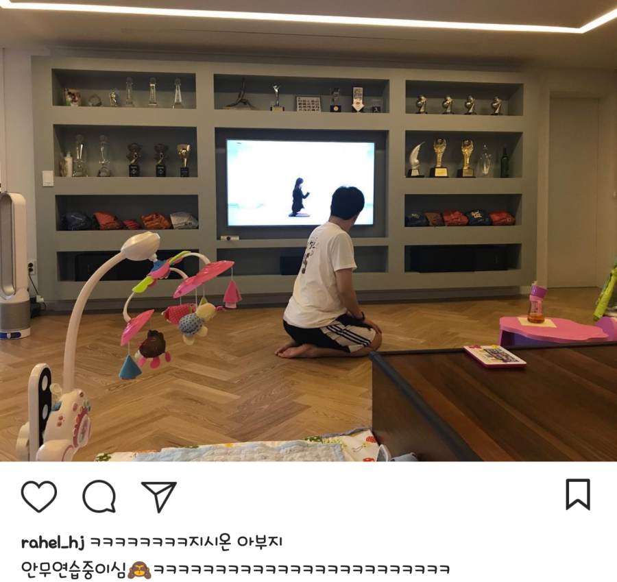 기아타이거즈 우승공약으로 걸그룹 댄스를 내걸었는데.... 선미 '가시나' 뮤비를 보고 안무에 열중인 양현종을 찍은 양현종 부인의 인스타를 캡쳐한 짤을 홍차넷에 올리며 즐거워하는 나도 따라 가시나~ 가시나~♬ 벽면 가득한 트로피가 인상적. 0