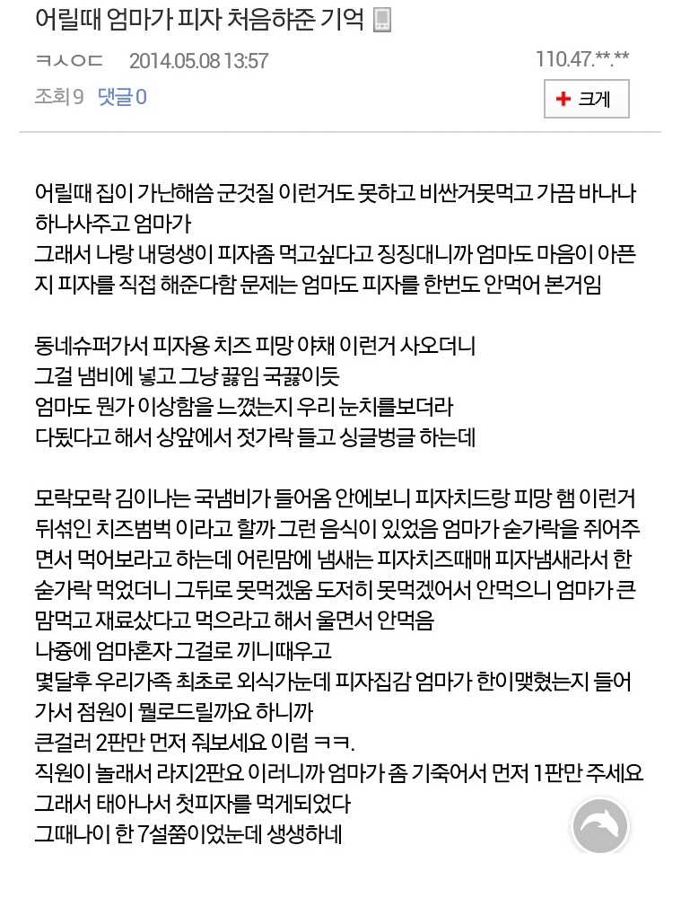 | Subject | 어느 디시인의 어릴 때 엄마가 피자 처음 해준 기억.jpg |