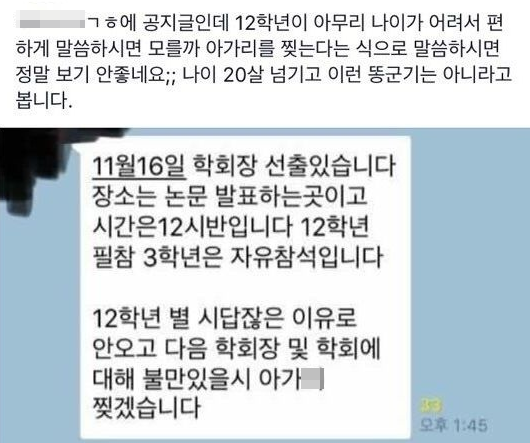 허세든 가오든 중딩때나 귀엽지 다 커서 저러면.... 쯧쯧 글고 전체 참석이면 참석이지 1,2학년은 필참이고 3학년는 선택이니? 할려면 다 필참으로 해야 하는거 아이니? 0