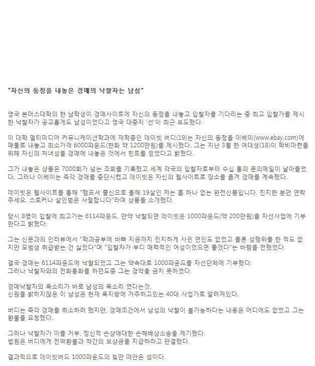 | Subject | 자신의 동정을 경매에 내놓은 학생 |
