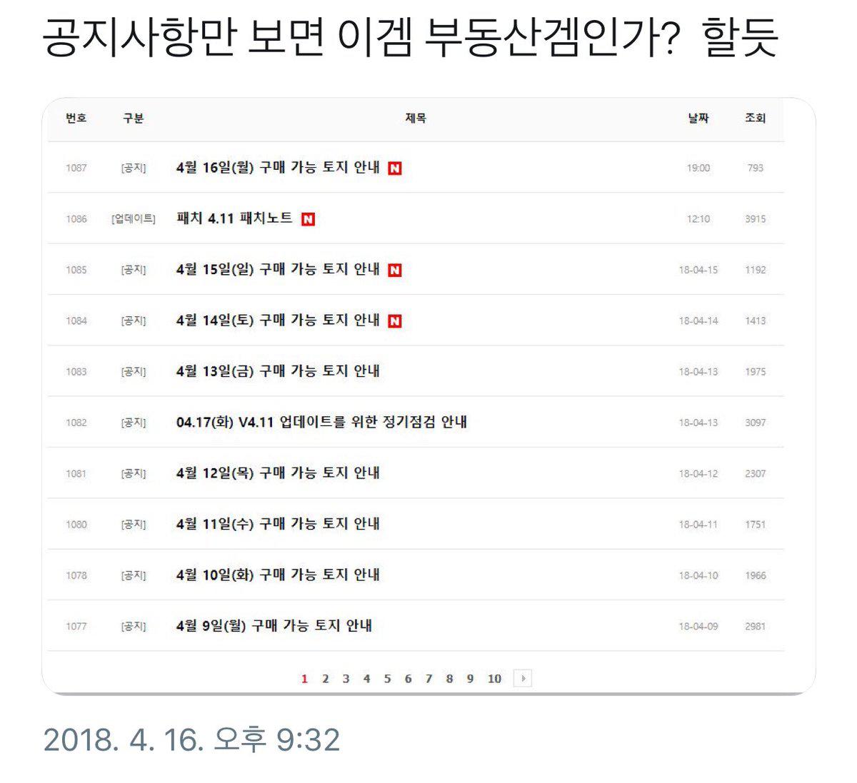 공지사항이 저렇다보니... (반 이상이 토지 안내...) 0