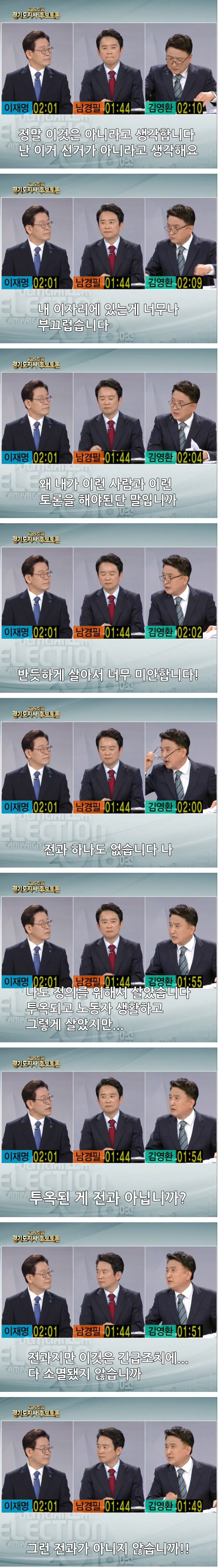 놀라서 쳐다보는 남경필이 백미!! 아니 아무리 감이 없어도 그렇지 거기서 ‘그것도 전과’라니.... 표 떨어지는 소리가 들리네요. 0