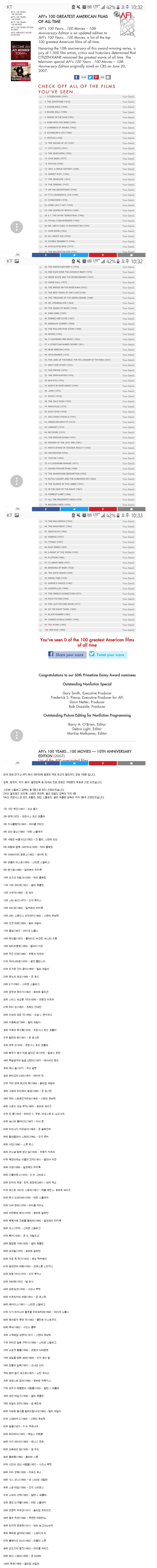 | Subject | 미국 영화 연구소 선정 미국영화 역대 Top100 |