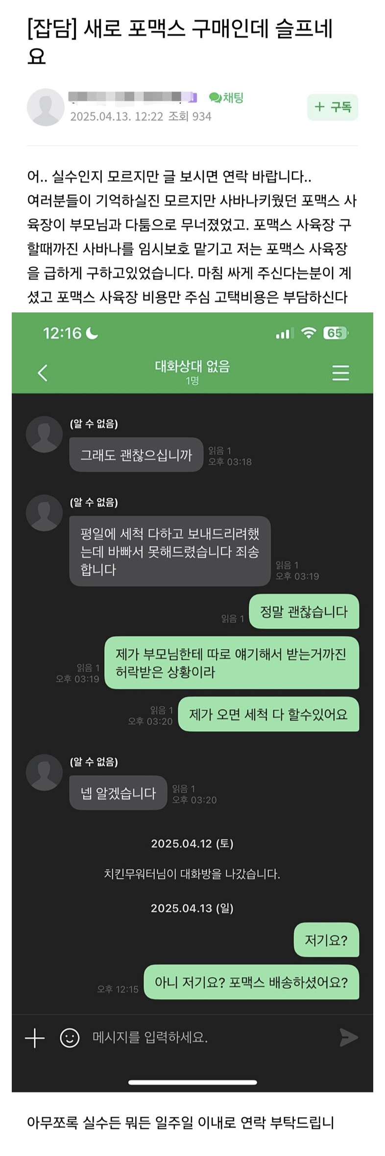Subject   도마뱀 분양글을 올린 중학생 슬픈 후기