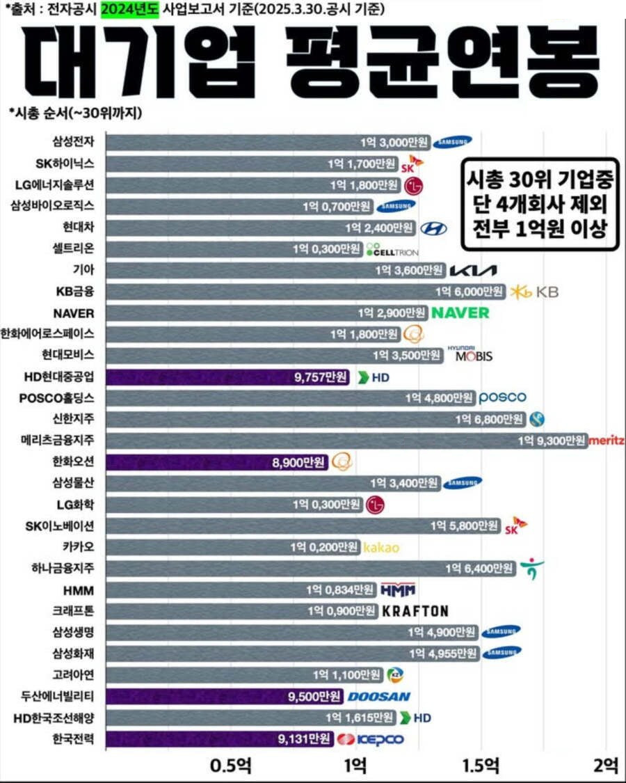 국내 30대 대기업 평균 연봉 0