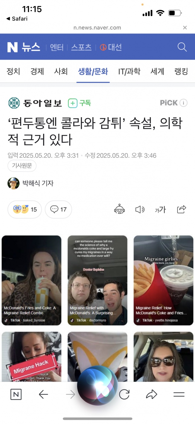 68662 편두통에 콜라+감튀 효과 있는 것으로 밝혀져 4 골든햄스 25/05/22 2419 1