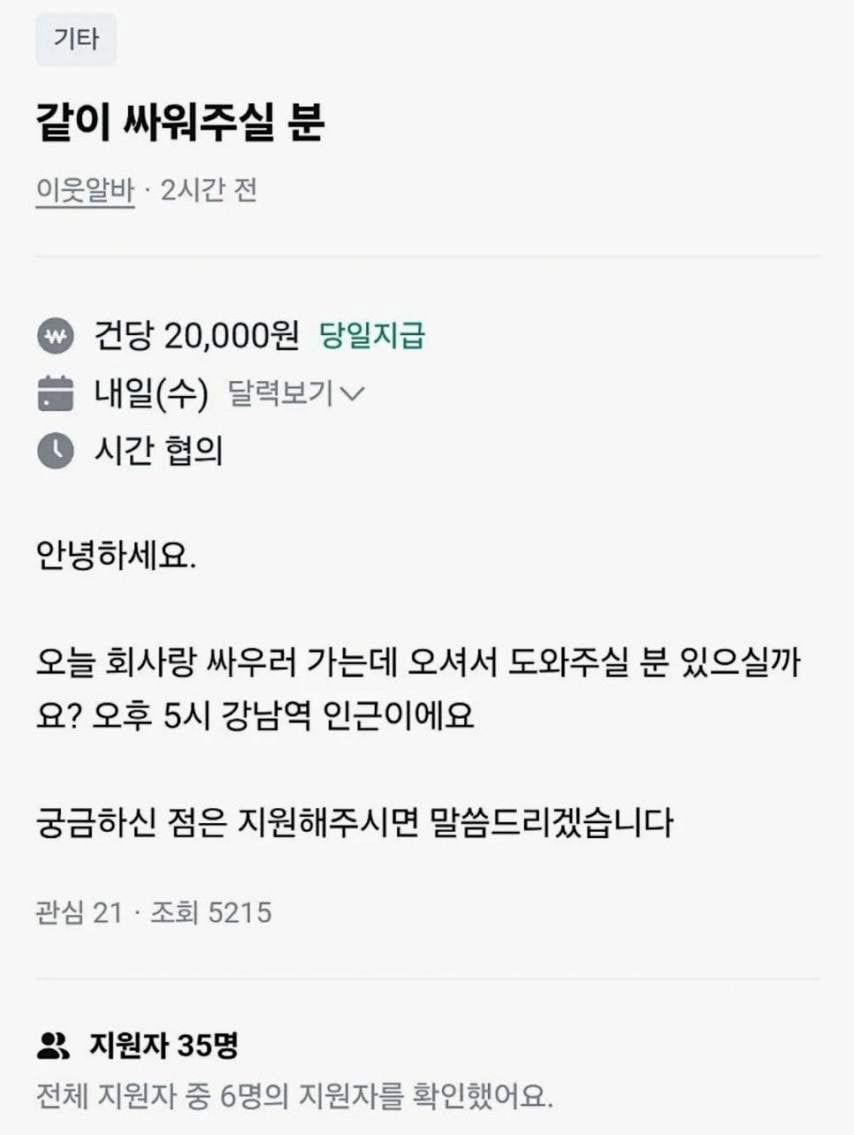 | Subject | 일당 2만원 지원자 35명 당근 알바 |