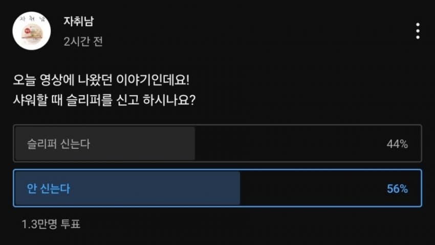 Subject   샤워할때 슬리퍼 신는다 vs 안신는다