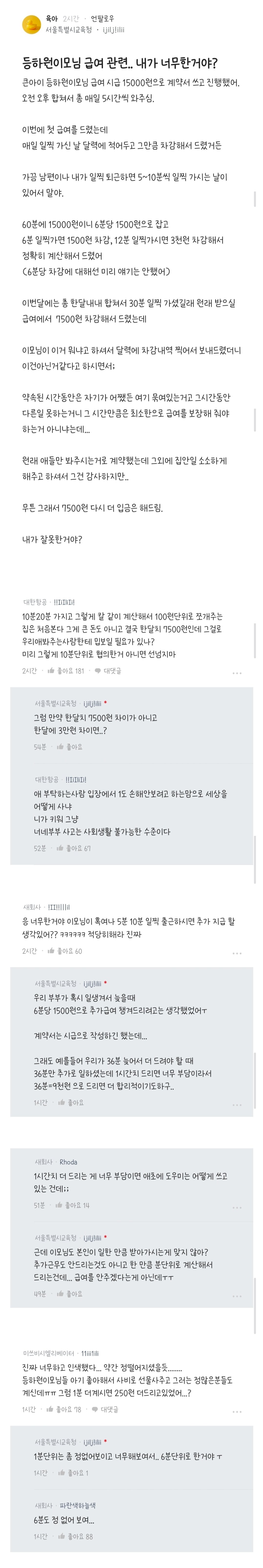 Subject   등하원이모님 급여 관련.. 내가 너무한거야?