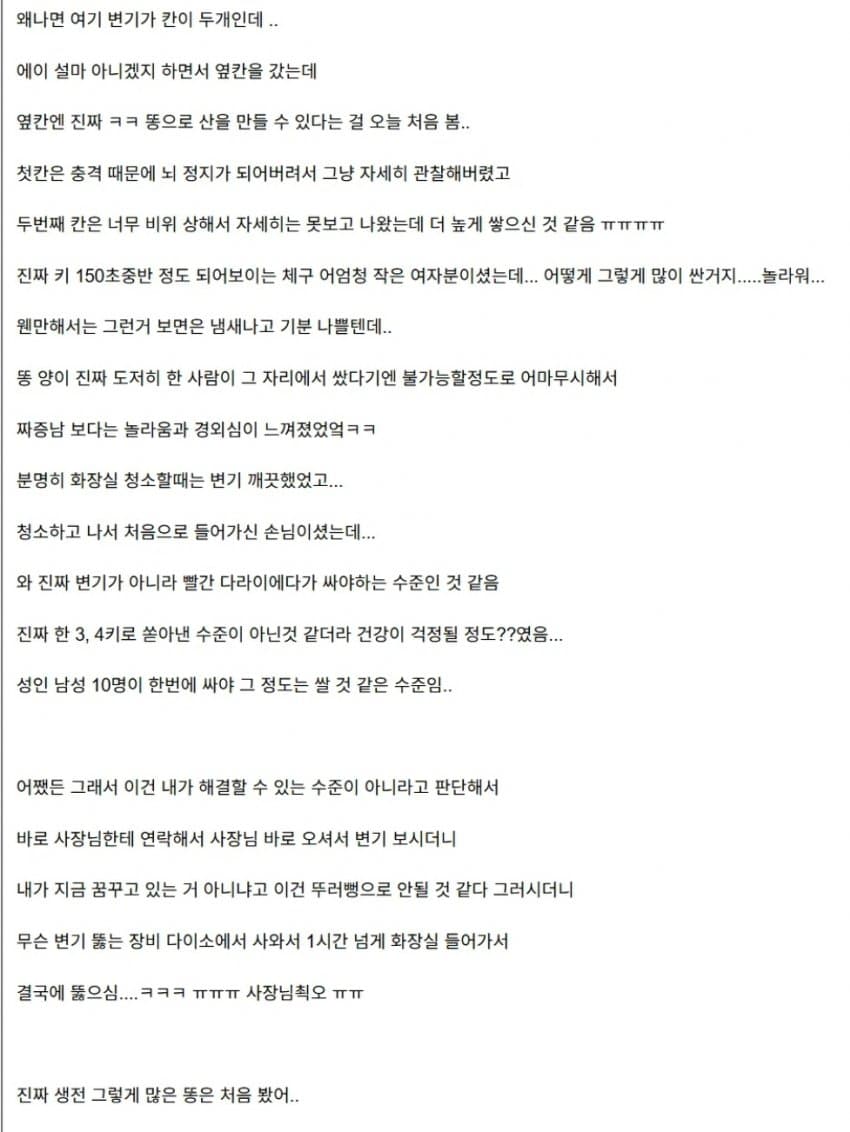 Subject   [혐주의] 산처럼 싸고 간 여자손님 썰