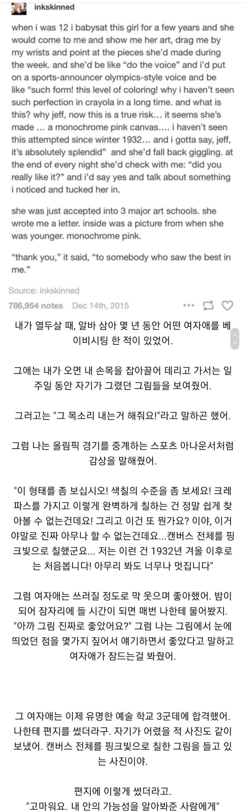 | Subject | 내가 열두살때 어떤 아이를 베이비시팅한 적이 있었어 |