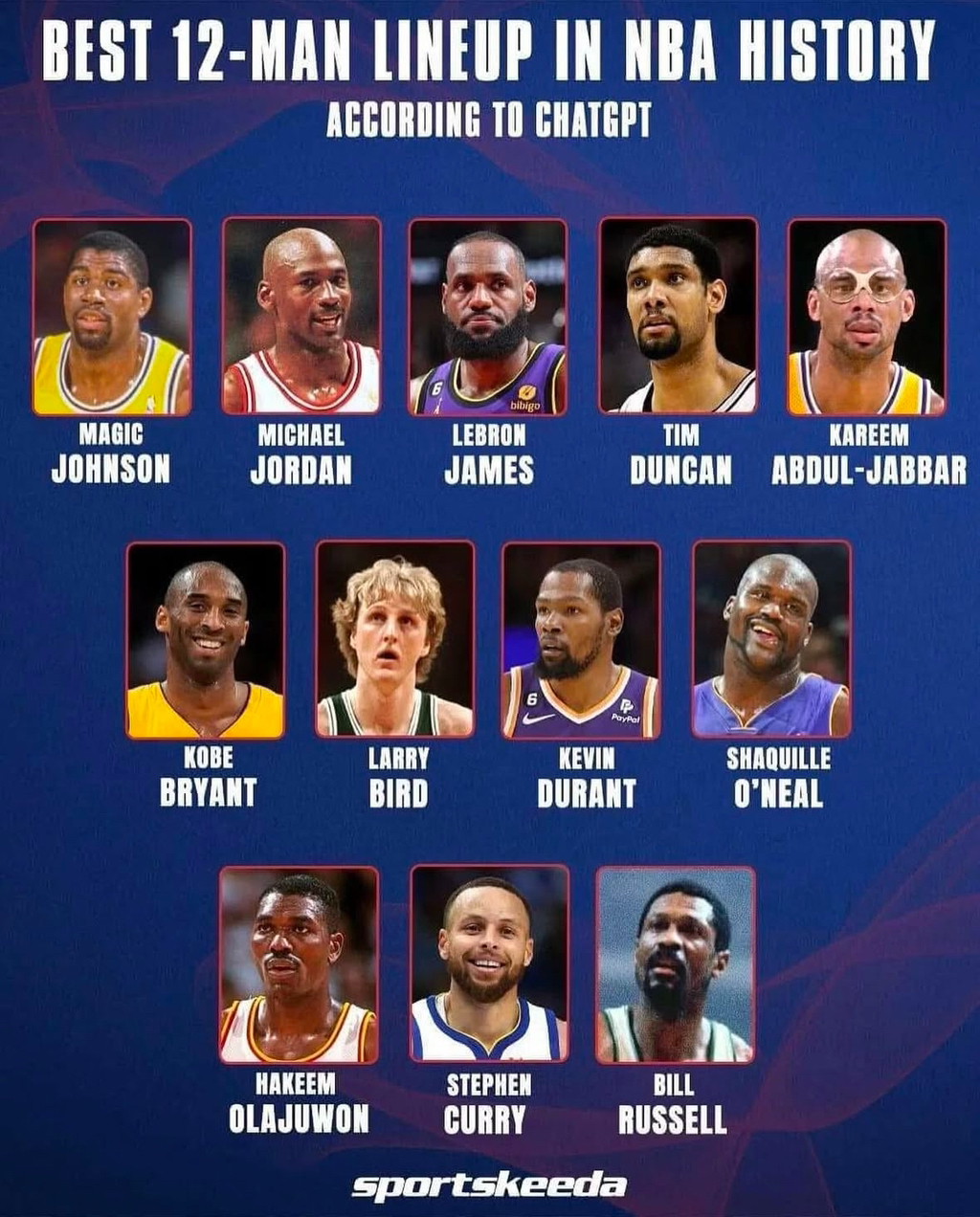 NBA 역대 Best 12 (cf. 챗 지피티)