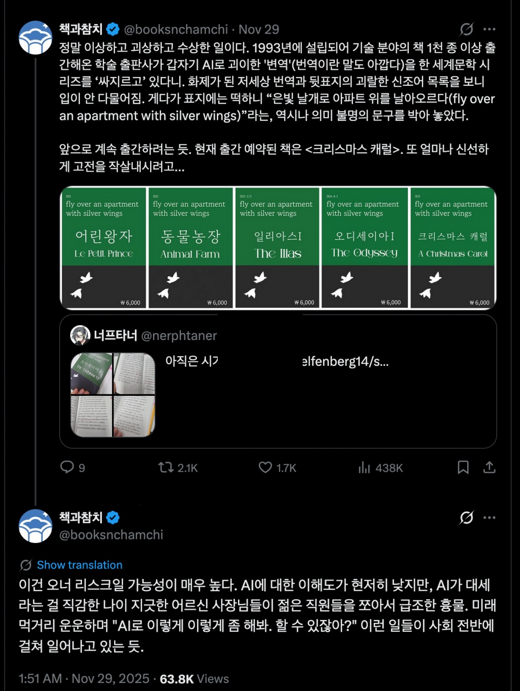 현 시점에서 AI가 번역하면 이렇다는걸 보여주려는 책인거같아요 ㅎㅎㅎ
