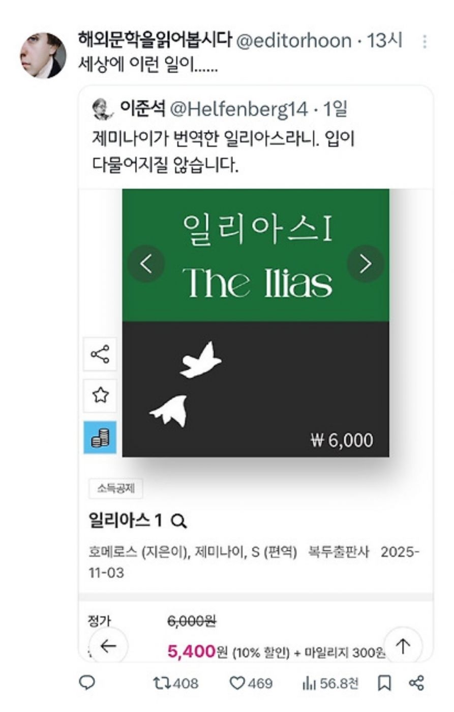 70183 제미나이가 번역한 일리아스 출간 10 다람쥐 25/11/29 748 0