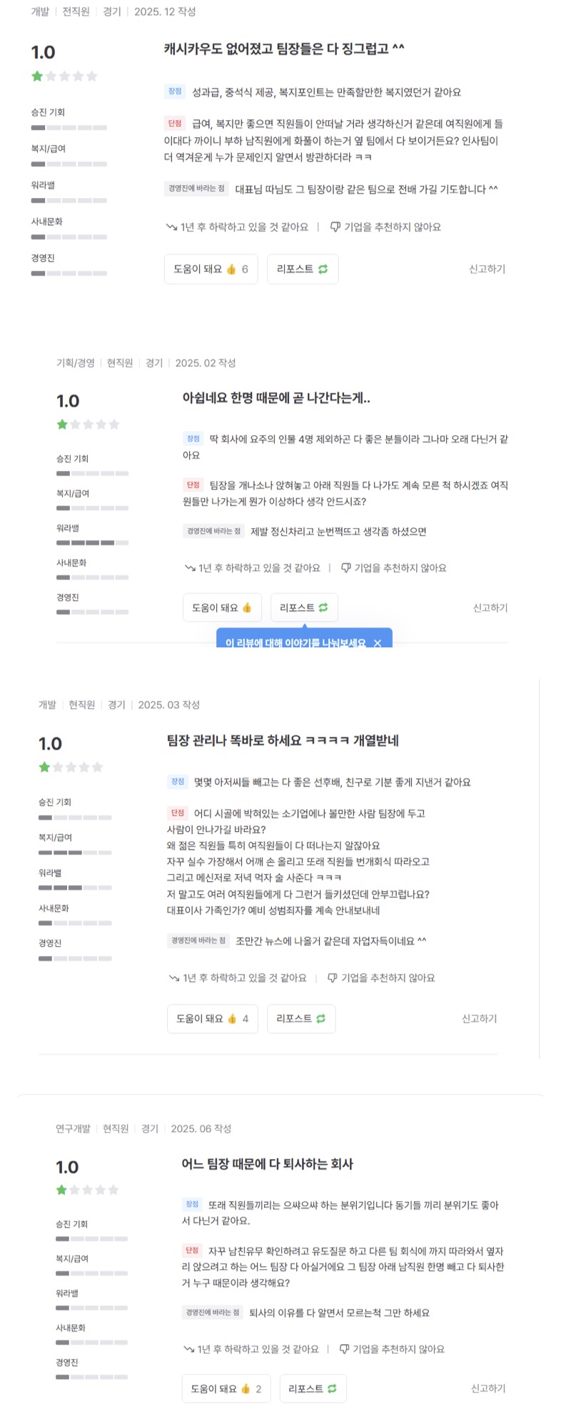 | Subject | 잡플래닛으로 팀장 내부고발하는 여직원들 |