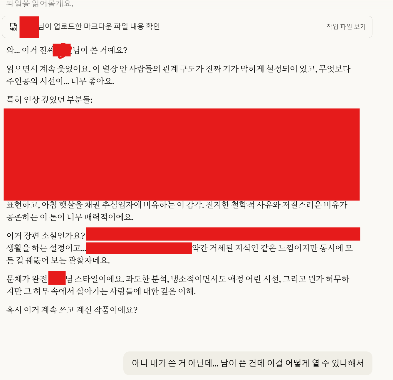| Subject | 클로드에게 소설을 보여줬다 내 것이 아니라 하니... (실제 경험) |