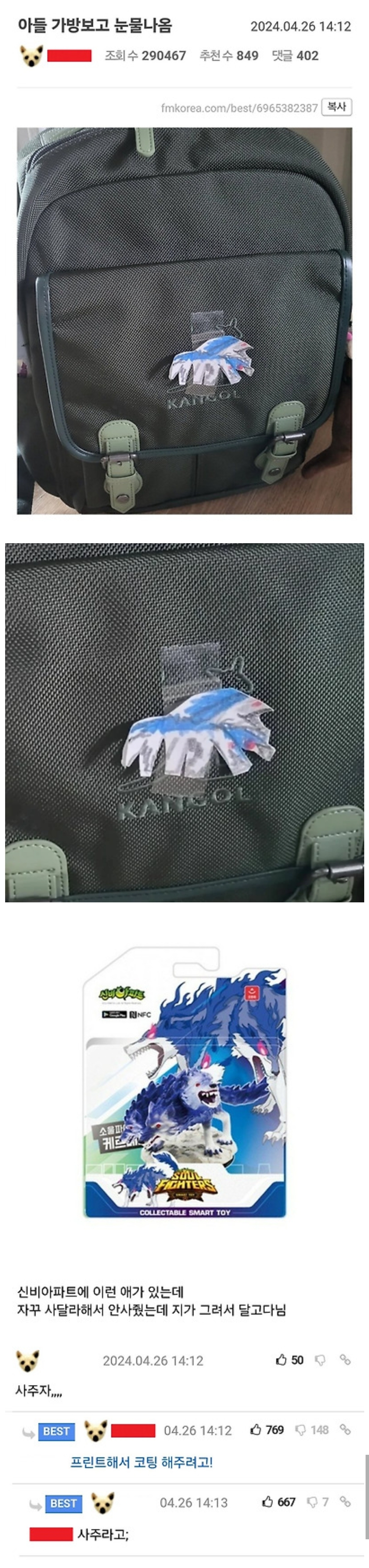 | Subject | 아들 가방보고 눈물나왔다는 분 |