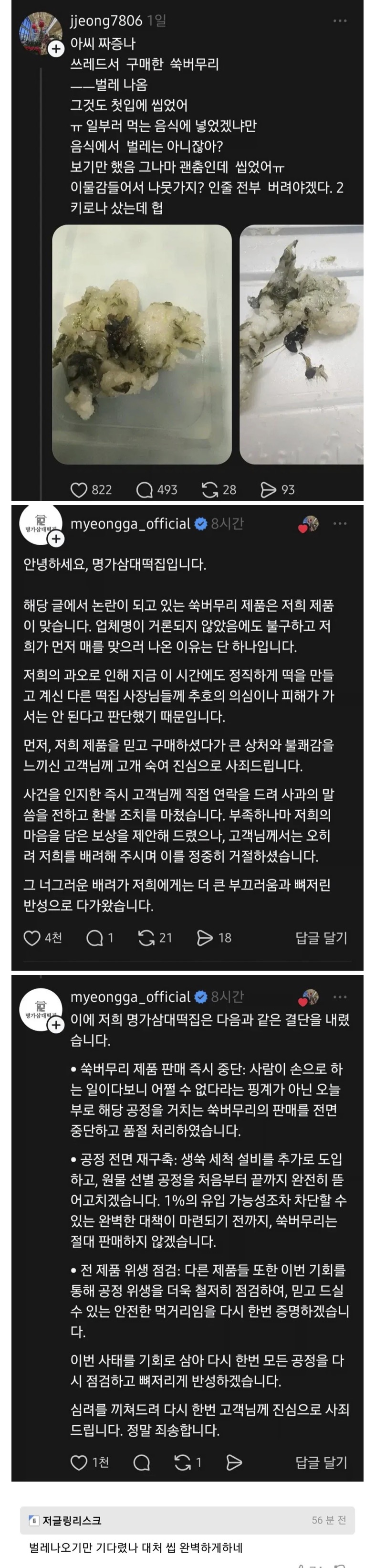 | Subject | 이물질 나온 떡집 대응 수준 |