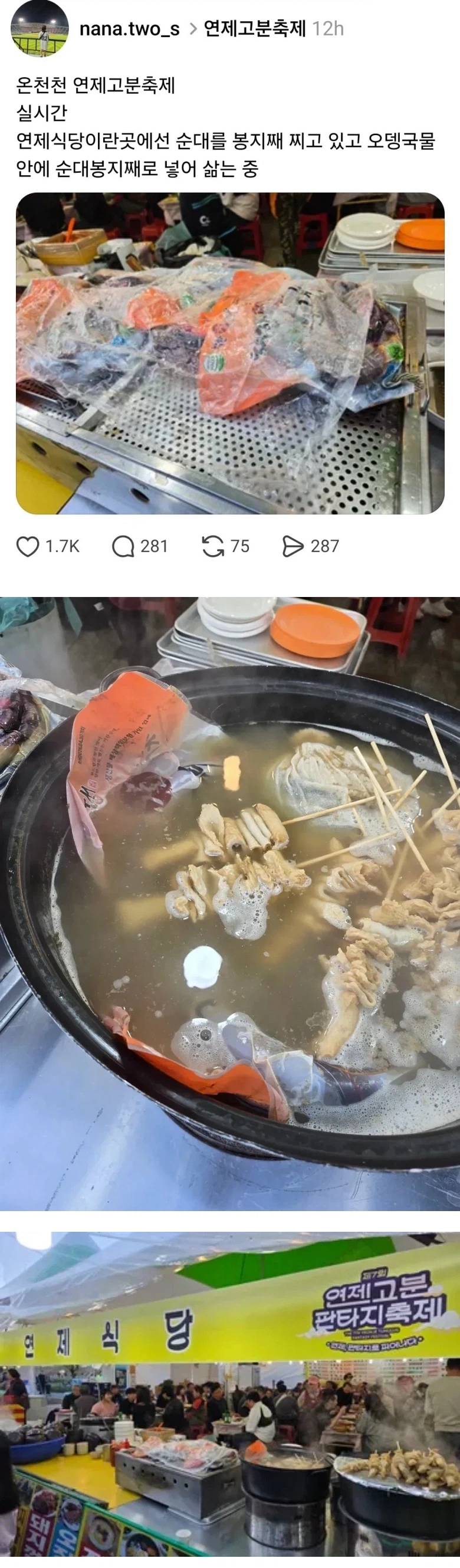 다른건 몰라도 사람들이 먹는 오뎅국물에 왜 순대 봉투를 데우는 것인지... 0