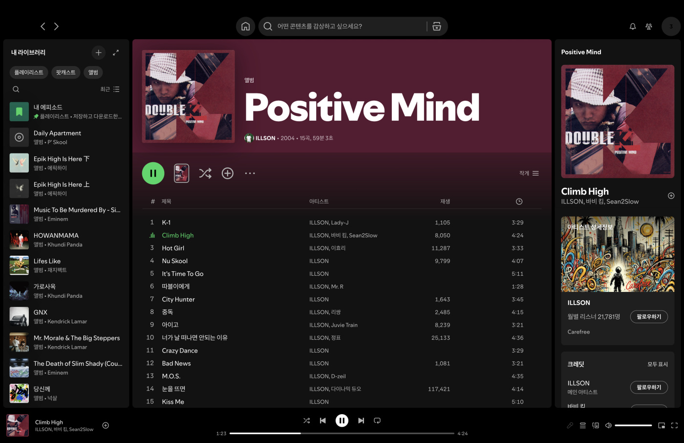 더블케이(aka 일손) - Positive Mind 제가 군대에서 가장 많이 들었던 무브먼트 멤버 앨범은 바로 이 따불이의 1집이읍니다. 한때 개쩌는 랩스킬 장인이라 매우 좋아했었는데 세월이 그립읍니다...ㅜㅜ #오늘의국힙 #_18 0