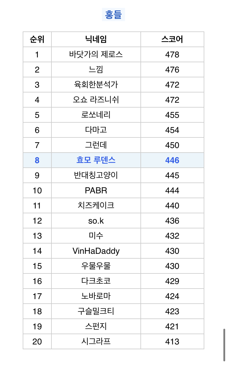 한 자리 순위권 진입도 영광이읍니다 ㅎㅎ