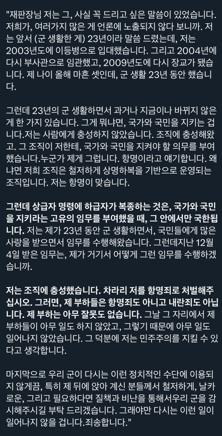 정치피고인 尹 앞에서 "사람에 충성하지 않는다" 던진 특전대대장 17 |