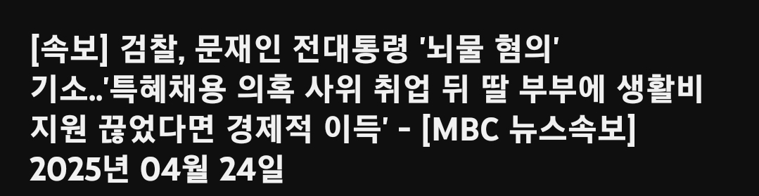 Subject   1보] 검찰, 문재인 전 대통령 뇌물 혐의로 기소