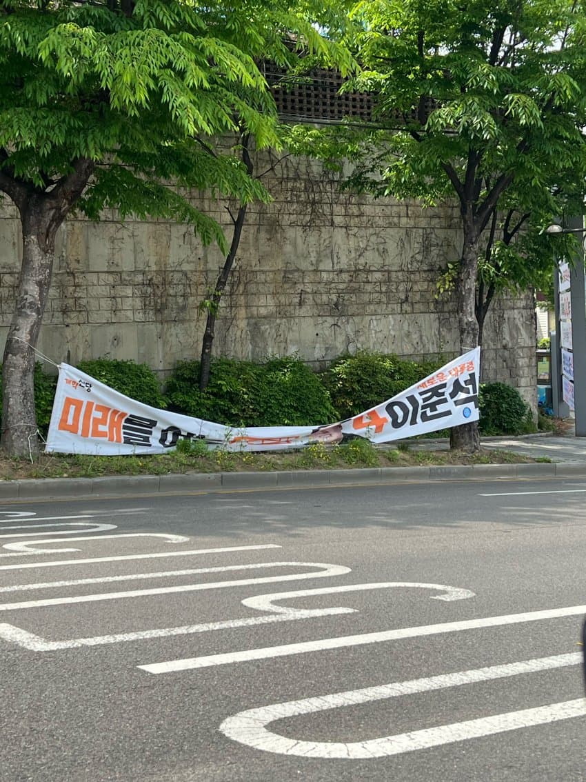 Subject   고개 숙여야 지나가는 이준석 후보 현수막…