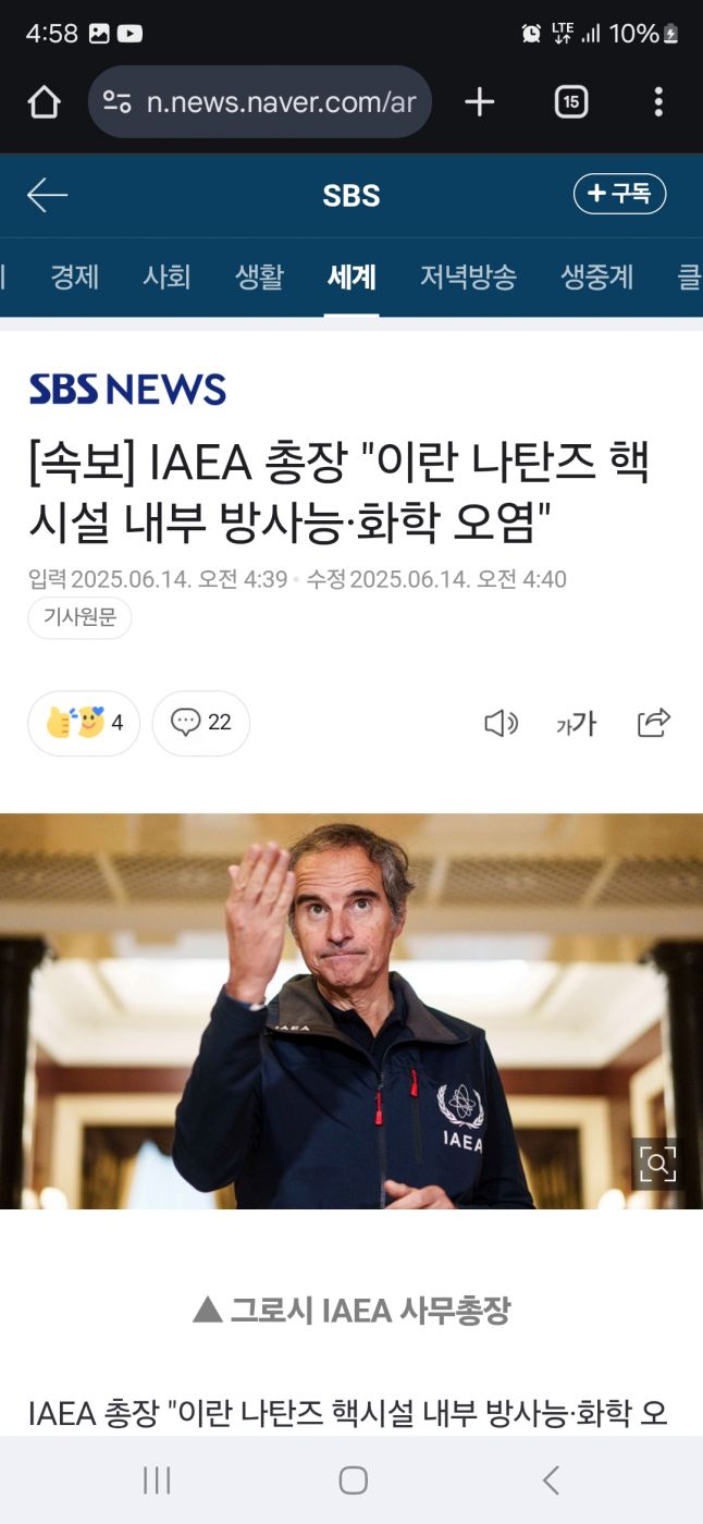 국제속보] IAEA 총장 "이란 나탄즈 핵시설 내부 방사능·화학 오염" 1 |