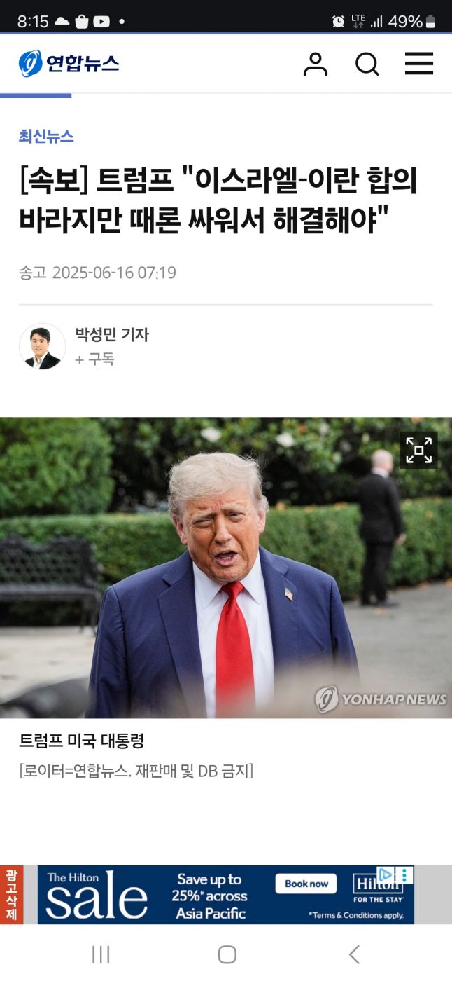 Subject   속보] 트럼프 "이스라엘-이란 합의 바라지만 때론 싸워서 해결해야"