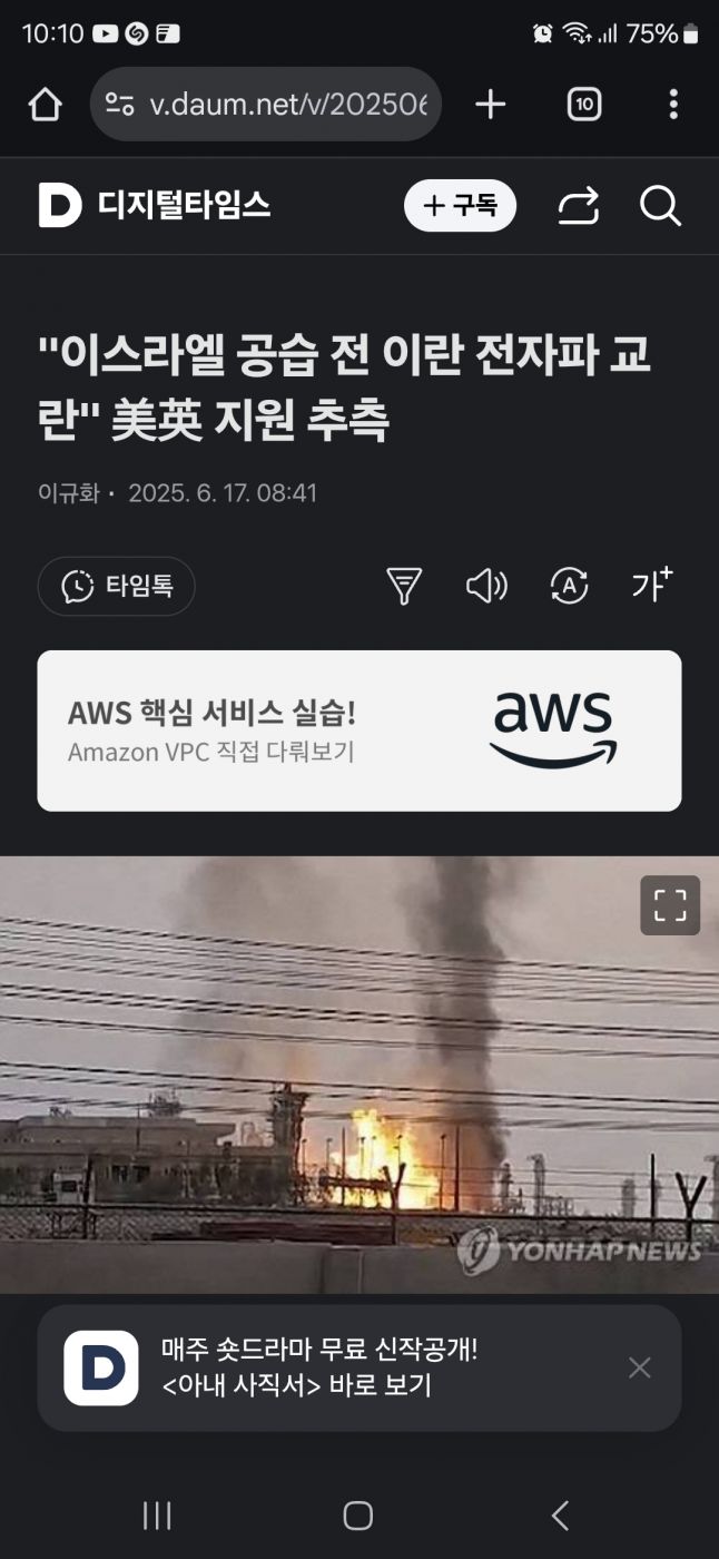 https://v.daum.net/v/20250617084111176 기사의 내용은 이스라엘의 이란을 공격하기전부터 미국과 영국이 전자파로 이란을 교란해왔다? 왔었다?라는건데요. 미국은 참전안한다고 하지만 솔직히 이정도나 장비 지원하는걸 보면 참전한거랑 다를바 없는거 아닌가 싶네요... 0