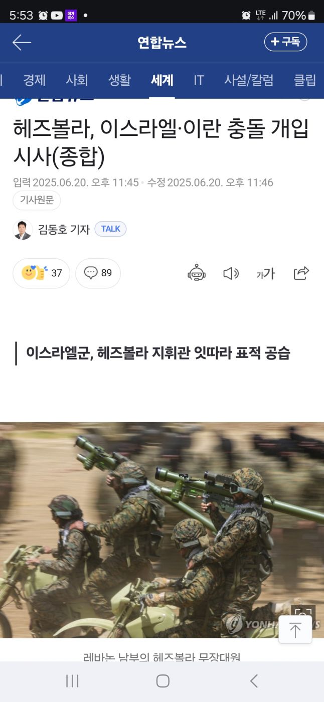 | Subject | 헤즈볼라, 이스라엘·이란 충돌 개입 시사(종합) |