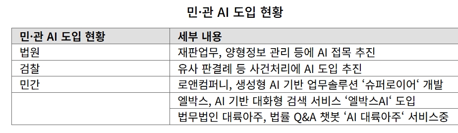 | Subject | 재판·수사·상담도 AI 접목…법조계는 민·관 모두 AI돌풍 |