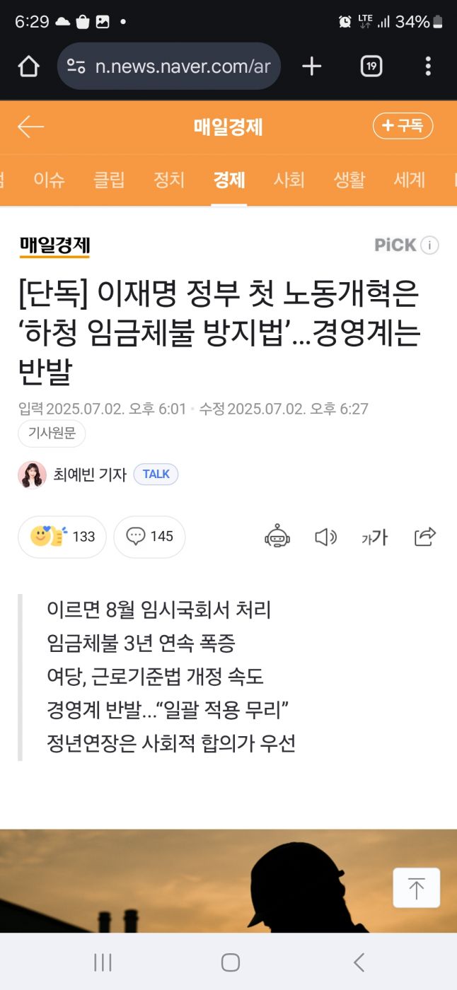 Subject   단독] 이재명 정부 첫 노동개혁은 ‘하청 임금체불 방지법’…경영계는 반발