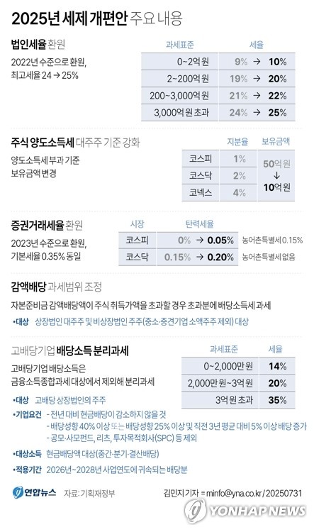 | Subject | 법인세 올리고 증권거래세 0.2% 환원…첫 세제개편안 발표 |