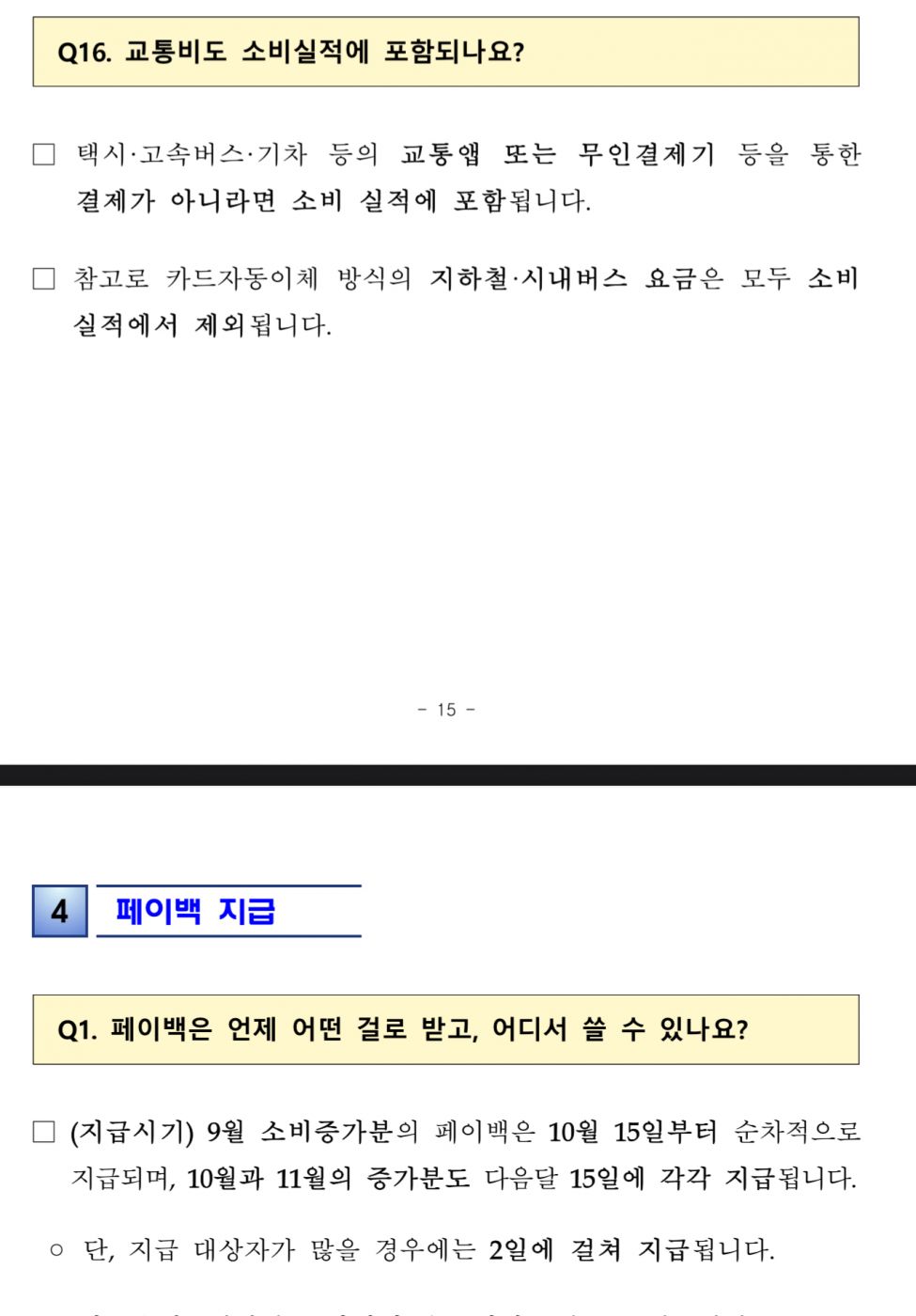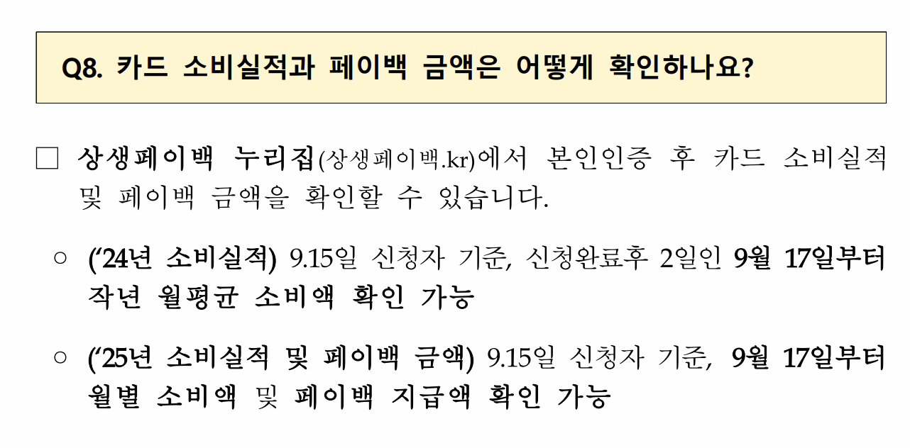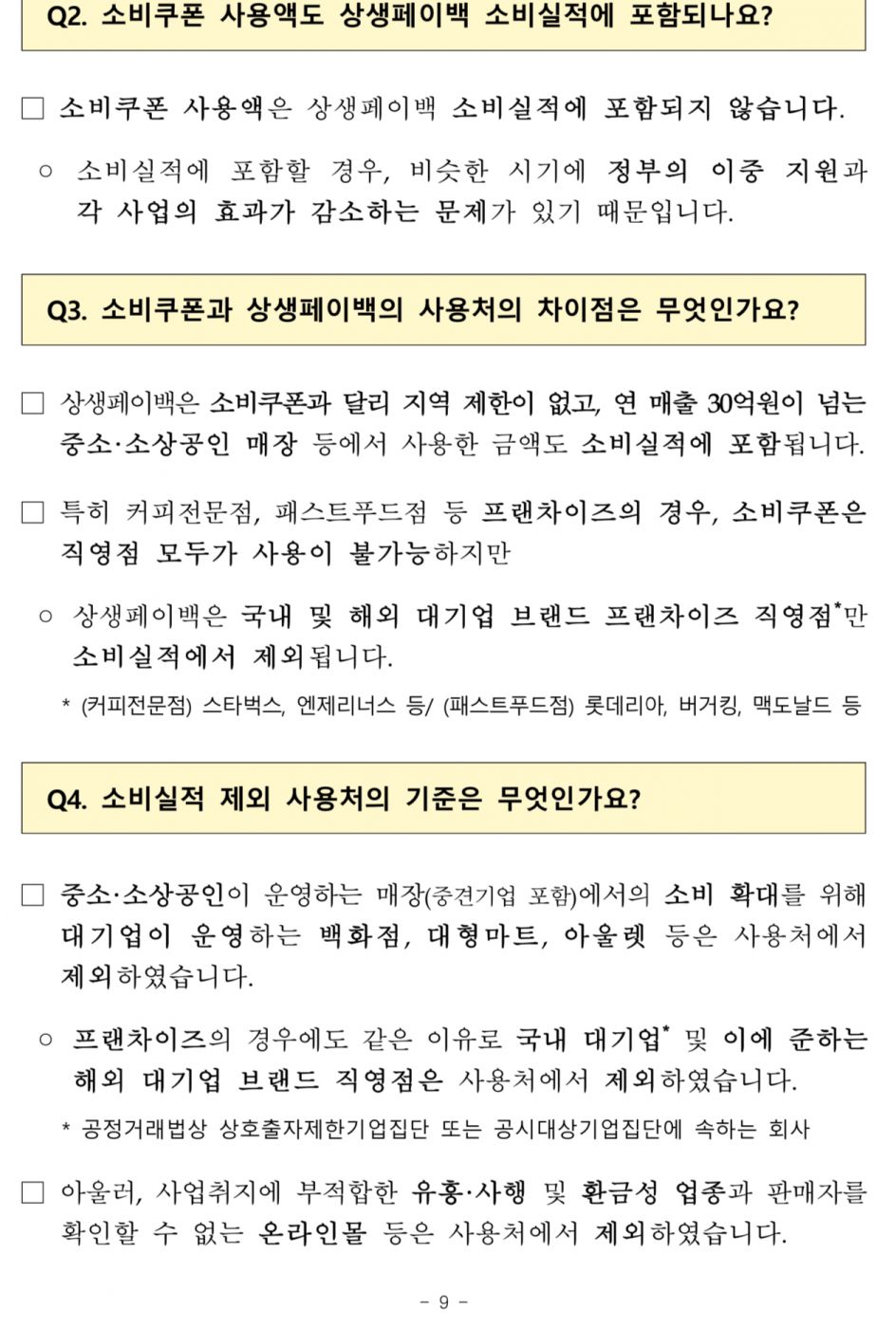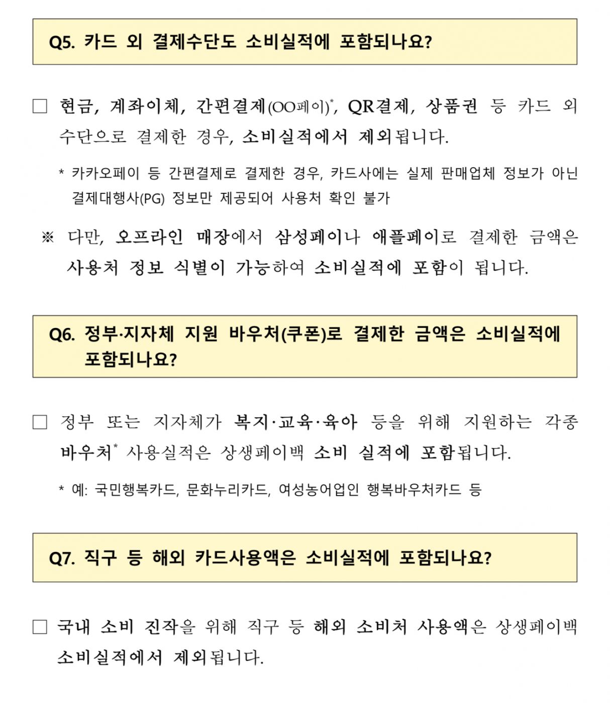 "상생페이백은 내수 진작 및 소비 활성화라는 취지에 맞추어 카드사용액 산정 시 일부 업종에서의 실적은 제외됩니다.