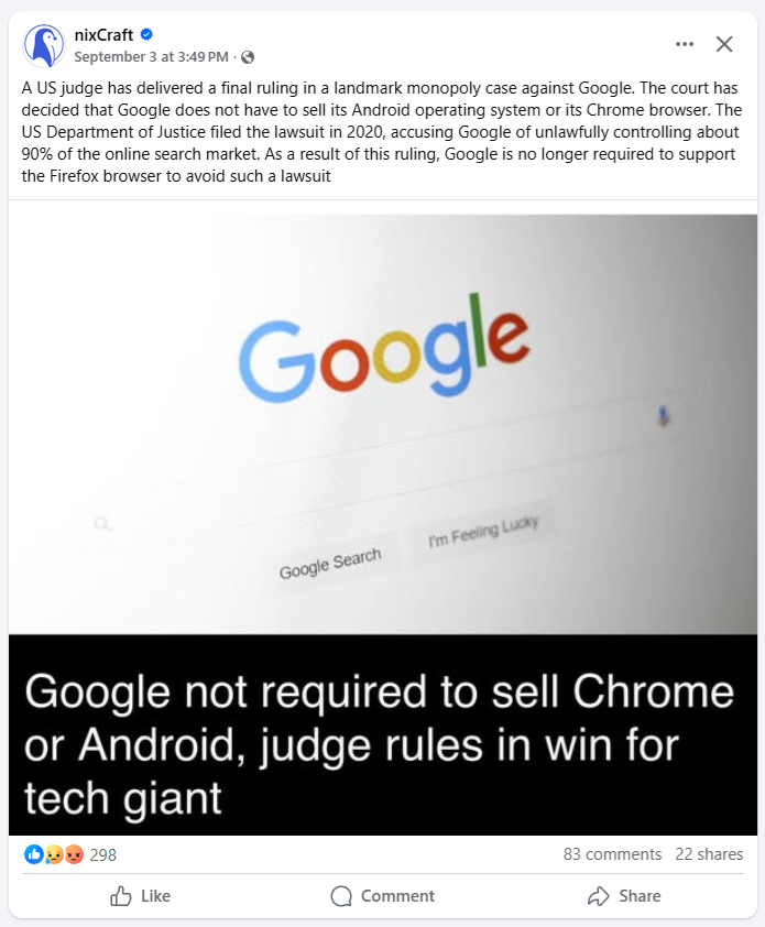 [구글은 더이상 이와 같은(반독점법 위반 등) 소송을 피하기 위해 파이어폭스를 지원할 이유가 없다]