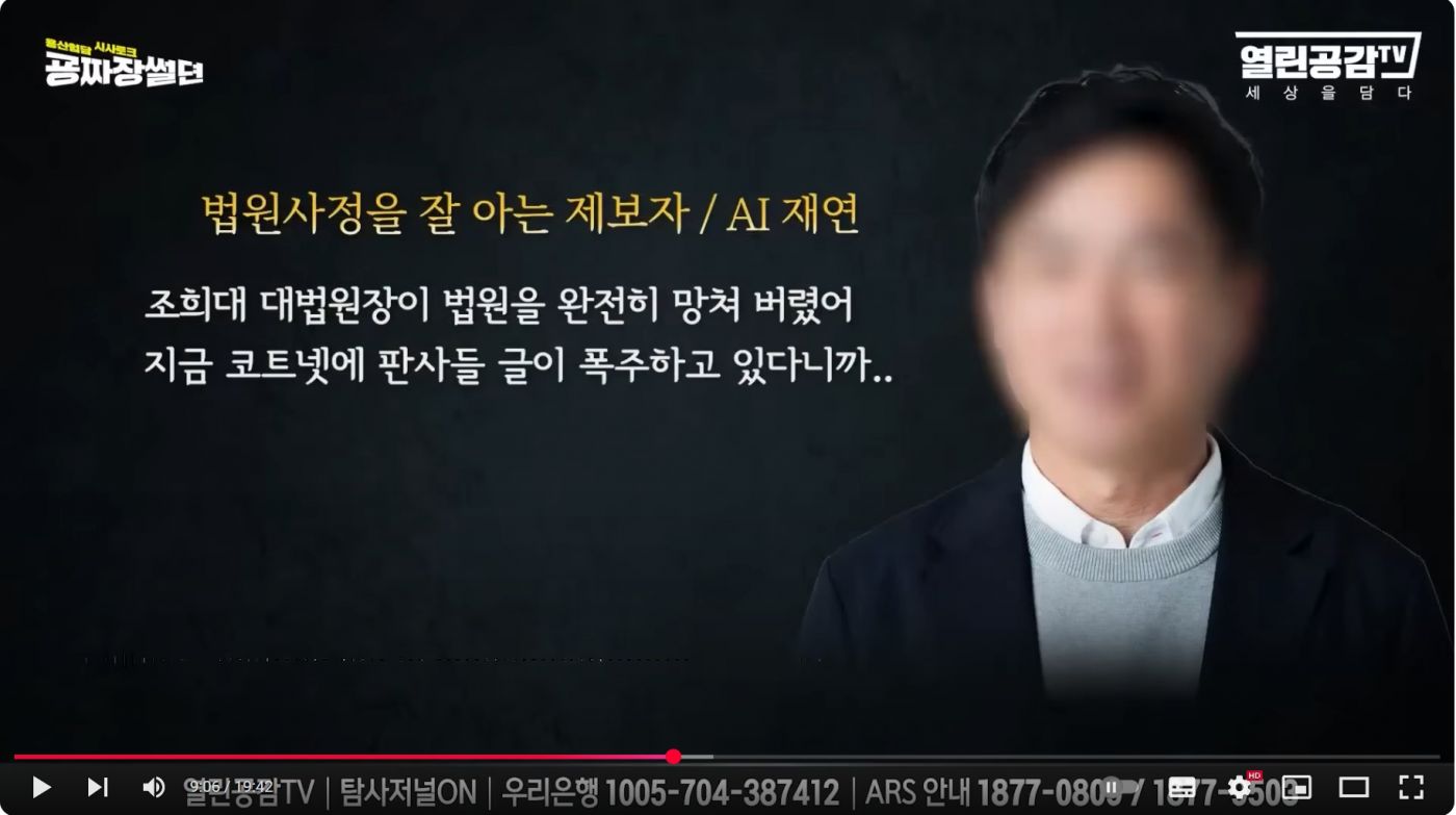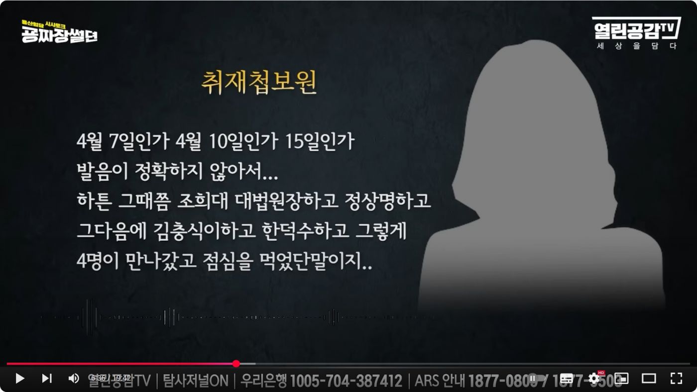 조선일보 https://www.chosun.com/politics/politics_general/2025/09/18/BINVMZ5VOFFAZCEQG2USSL6T2Q/ ![]() ///해당 녹취 음성은 지난 5월 10일 유튜브 ‘열린공감TV’가 ‘취재 첩보원’의 제보라며 처음 공개했다. 음성 속 인물은 “이야기를 들었는데, 4월 4일 윤석열 탄핵 선고 끝나고, 4월 7일인가 4월 10일인가 15일인가. 조희대, 정상명(전 검찰총장), 김충식(김건희 여사 모친의 측근), 한덕수(전 국무총리) 4명이 만나서 점심을 먹었다”며 “그 자리에서 조희대가 ‘이재명 사건 대법원에 올라오면 알아서 처리한다’는 이야기를 했다”고 했다. 유튜브 진행자는 해당 녹취를 공개하며 “아직까지는 ‘주장’이다. 주장이라는 점을 염두에 두라”며 “제발 고소·고발 좀 그만하시라”고 했다. 서영교 의원은 나흘 뒤인 지난 5월 14일 국회 법제사법위원회에서 이 음성을 그대로 틀며 “제보를 받았는데, 윤석열 탄핵 이후 정상명, 한덕수, 김충식, 조희대 4인이 회동했다고 한다”고 했다. ‘열린공감TV’는 당시 방송에서 “해당 음성은 AI로 제작된 것으로 특정 인물이 실제 녹음한 것이 아님을 알려드린다”고 공지했다. 하지만 이 사실은 그동안 주목받지 못하다가 최근 민주당이 조희대 대법원장의 사퇴를 본격적으로 압박하고 나서면서 재조명됐다. 서 의원은 조선닷컴과의 통화에서 국회에서 공개한 녹취록이 AI 음성이라는 사실을 알았느냐는 질문에 “우리가 따로 받은 제보도 있다”며 “그 모든 것은 수사를 해서 확인하면 된다”고 했다. 서 의원은 녹취록이 AI 음성이라는 사실을 알았느냐고 다시 묻자 명확한 답변을 하지 않으며 “일정이 있어서 길게 통화하기 어렵다”고 했다./// 야당 인사들이 주장하는 것처럼 서영교가 틀었던 녹취가 AI음성이라는 말은 아마 사실은 아닐겁니다. 열린공감TV 방송에 저런 고지가 존재하기는 하지만 해당부분은 '첩보원'이라는 사람의 육성이 맞는 것으로 보입니다. ![]() ![]() ![]() AI음성 부분도 있긴 한데 그건 해당 부분이 아닌 다른 취재원의 제보를 AI로 재현했다고 표시한 부분이 나오거든요. ![]() 하지만 그 첩보원의 '녹취'라는 건 별로 의미있는 녹취가 아니죠. 보도자료로서 녹취가 의미 있는 것은 회동이 있었다면 그 현장에서의 녹취라든지 적어도 그 현장에 참석한 사람의 녹취여야 가치가 있습니다. 아무 관계 없는 사람이 그 사람이 그렇다고 카더라라고 한 얘기를 녹취한 것은 아무런 가치가 없어요. 그냥 제보 내용만을 명료하게 정리해서 전달해도 충분합니다. 여기에 '녹취'라는 이름을 입혀서 국회에서 대단한 증거처럼 공개한 서영교 의원은 좀 반성해야 합니다. 열린공감은 원래 그런 채널이에요. 별로 의미 없는 소스도 녹취라는 이름으로 포장해서 사골끓이고 조회수 챙기는... 근데 이 부분이 AI음성이냐 아니냐는 별로 중요한 게 아니죠. 아마도 세상은 서영교가, 부승찬이 AI음성 가지고 헛발질한 걸로 기억할 겁니다. 중요한 건 헛발질한 거지, AI음성이냐는 건 양념일 뿐이까요. 사법개혁은 꼭 필요하고, 제대로 해야죠. 근데 개혁을 하겠다고 나서는 이들이 이따위 망발을 하면 개혁은 커녕 개혁대상에게 삼켜질 겁니다. 이미 조국의 검찰개혁 때 그걸 충분히 목도했어요. 그의 검경수사권 조정은 고개를 갸웃거리게 하는 면이 많았지만, 무슨 심모원려라도 있을까 싶었는데, 그런 건 전혀 없더군요. 칼자루를 쥐고 있는 상대에게 내가 옳으니까 칼을 내놓으라고 아무리 고함을 질러도, 돌아오는 건 칼빵이죠. 열린공감TV 보다도 못한 작자가 거대여당의 원내대표가 될 뻔했다는 게 아찔합니다. 이런 식으로 사법개혁을 다루다가 '검찰공화국 개추' 2탄을 보게 될까 두렵네요. 3
